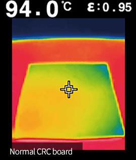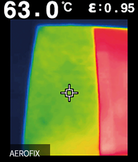 Heat shield effect of about 31℃ in AEROFIX construction compared to normal CRC board on a heat plate heated to 100℃